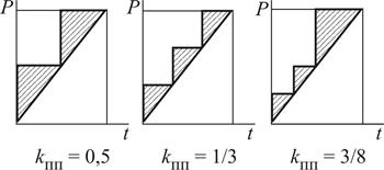 В том случае, если имеется несколько группировок ТД, то диаграмма изменения потерь в пусковых резисторах принимает ступенчатый вид. Коэффициент пусковых потерь равен отношению энергии теряемой в пусковых сопротивлениях к энергии, идущей на совершение полезной работы: