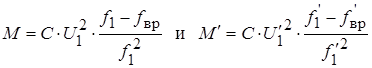Найдем соотношение моментов в этих режимах при условии f 1 – f вр = f 1' – f вр' = const:
