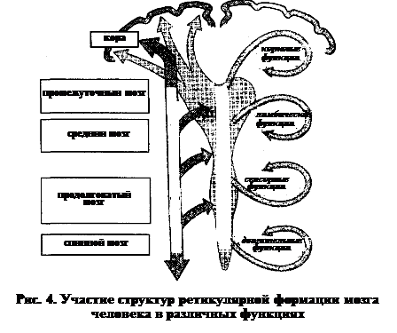 Несмотря на чрезвычайную сложность клеточной организации мозга, все разнообразие нейронных сетей можно свести к двум базовым схемам: 1. Иерархические системы – к ним относятся многочисленные проводящие пути спинного и головного мозга, контролирующие двигательную активность и чувствительность и состоящие из различных клеток последовательно соединенных при помощи толстых, миелинизированных волокон. Важной особенностью этой схемы является то, что повреждения, нанесенные на любом ее уровне, вызывают нарушение работы всей системы. Иерархические системы состоят из клеток двух типов: ü проекционные (релейные) нейроны: будучи связанными посредством химического синапса, передают сигналы на большие расстояния в пределах организма. Для них характерны крупные тела с многочисленными отростками вокруг (дендриты) и одним длинным отростком (аксон) для контакта с другими составляющими системы. Как правило, синапсы, образованные этими клетками, относятся к возбуждающим синапсам, часто использующим глутамат в качестве нейромедиатора; ü вставочные (местные) нейроны: они участвуют в образовании многочисленных синапсов с проекционными нейронами или друг с другом. Тела этих клеток значительно мельче, аксоны мало выражены. Разнообразие синапсов (аксо-соматические, аксо-дендритные, аксо-сомальные и т. п.) позволяет реализовать различные виды межнейронных взаимодействий, прежде всего торможение – прямое, возвратное, латеральное и др. Таким образом, большинство синапсов, образованных вставочными нейронами, – тормозные, предпочтительно использующие ГАМК и/или глицин в качестве нейромедиатора. Несмотря на разнообразие синаптических связей, в подсистеме вставочных нейронов используется ограниченное количество нейромедиаторов. В результате, фармакологически воздействуя на них, можно существенно изменить общую возбудимость нервной системы, что и наблюдается, например, при действии стрихнина. 2. Диффузные (неспецифические) системы – к ним относятся нейронные сети ретикулярной формации мозга. При этом тела клеток входят в состав относительно немногочисленных (в мозге человека насчитывается около 40 ядер) компактных скоплений. Отростки нейронов ретикулярной формации тонкие, немиелинизированные, часто ветвятся и меняют направление, следуя как в восходящем, так ив нисходящем направлении. На нейронах ретикулярной формации конвергируют различные афферентные сигналы, в то же время ветви одного нейрона могут иннервировать несколько функционально различных частей ЦНС. В качестве нейромедиаторов диффузные системы используют различные моноамины – норадреналин, серотонин и, главное, дофамин. На протяжении аксонов моноаминергических нейронов существуют многочисленные расширения (аксоны en passant), содержащие большое количество синаптических пузырьков, обеспечивающих диффузное выделение нейромедиатора. Важным следствием подобной организации является то, что клеточные мишени действия медиатора определяются местоположением их рецепторов, а не источника их синтеза. В связи с этим диффузные системы не могут и не являются передатчиками специфической топографической информации. Они опосредуют генерализованные восходящие тонические влияния (возбуждающие и тормозные), направленные на регуляцию активности коры больших полушарий, вовлеч