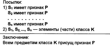 Понятие индукции. Полная индукция Познание в любой области науки и практики начинается с эмпирического познания. В процессе наблюдения однотипных природных и социальных явлений фиксируется внимание на повторяемости у них определенных признаков. Устойчивая повторяемость наводит на мысль, что каждый из таких признаков является не индивидуальным, а общим, присущим всем явлениям определенного класса. Логический переход от знания об отдельных явлениях к знанию общему совершается в этом случае в форме индуктивного умозаключения, или индукции (от латинского inductio — «наведение»). Индуктивным называется умозаключение, в котором на основании принадлежности признака отдельным предметам или частям некоторого, класса делают вывод о его принадлежности классу в целом. В истории физики, например, опытным путем было установлено, что железные стержни хорошо проводят электричество. Такое же свойство было обнаружено у медных стержней и у серебра. Учитывая принадлежность указанных проводников к металлам, было сделано индуктивное обобщение, что всем металлам свойственна электропроводность. Посылками индуктивного умозаключения выступают суждения, в которых фиксируется полученная опытным путем информация о повторяемости признака Р у ряда явлений — S1, S2,..., Sn, принадлежащих одному и тому же классу К. Схема умозаключения имеет следующий вид: