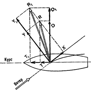 Подобное построение позволяет легко убедиться, что с увеличением лобового сопротивления Х (при той же подъемной силе) тяга Т уменьшается. Таким образом, есть два пути увеличения силы тяги, а следовательно, и скорости хода на острых курсах: увеличение подъемной силы паруса и уменьшение лобового сопротивления паруса и яхты.