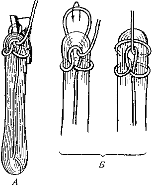 Ставить спинакер можно также двумя способами: от штага или от вант. Чтобы поставить спинакер первым способом, выносят мешок со спинакером на бак и крепят его впереди штага за специальные обушки на палубе. Затем крепят фал, шкот и брас за соответствующие углы паруса, следя, чтобы они не перепутались с другими снастями. Спинакер-гик одним из ноков с помощью оковки «клюва» крепят к бугелю на мачте и выстреливают с наветренного борта впереди вант. В «клюв» на другом ноке спинакер-гика вставляют брас или кренгельс галсового угла спинакера с заведенным в него брасом. К спинакер-гику крепят также топенант и оттяжку, если они есть на яхте. Подготовленный к постановке спинакер ставится по команде рулевого «Ставить спинакер!». По этой команде один из матросов быстро выбирает и крепит спинакер-фал; матрос, находящийся на баке, пропускает спинакер между рук, не давая ему преждевременно раздуться и уйти в воду, одновременно расправляя боковые шкаторины. Когда спинакер-фал будет выбран до места, подбирают спинакер-гика-топенант, чтобы спинакер-гик стоял горизонтально, и крепят ототяжку. Одновременно выбирают брас и шкот, заставляя спинакер наполниться ветром. Работая со спинакером на баке, нужно соблюдать осторожность и обязательно надевать спасательный жилет или нагрудник и иметь страховочный конец. Ставить спинакер от вант удобнее, чем с бака. На килевых яхтах его ставят у подветренных вант, на швертботах— между мачтой и наветренными вантами, выходя на палубу только для установки спинакер-гика, если этого нельзя сделать заранее. У подветренных вант ставить спинакер удобнее: он прикрывается гротом и не раздувается преждевременно. На курсе фордевинд спинакер надо нести так, чтобы спинакер-гик почти касался наветренных вант (рис. 114, А), а шкот потравить как можно больше: спинакер должен уйти вперед и принять возможно более «пузатую» форму, а спинакер-гик — продолжать линию грота-гика с наветренной стороны мачты. Для эффективной работы спинакера надо как можно больше выбирать брас и травить шкот, тогда он выйдет из-за грота. Узнать, что брас больше выбирать нельзя, можно по наветренной шкаторине спинакера, когда она начинает заваливаться и спинакер перестает работать. В свою очередь, перебранный шкот подтягивает спинакер слишком близко к гроту; поток воздуха, стекающий с него, ударяет в грот и заставляет подбирать гика-шкот, иначе он заполаскивает и в результате снижается скорость яхты. Поэтому со спинакером приходится работать особенно внимательно, беспрерывно то подбирая, то потравливая шкот и брас. Как только парус заработал, нужно убрать или замотать вокруг штага стаксель, чтобы он не мешал работе спинакера.