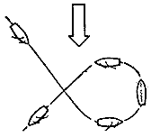 — по команде «Поворот!» рулевой кладет руль под ветер; шкотовые выбирают стаксель-шкот и травят гика-шкот до вант; когда корма подойдет к линии ветра, гика-шкот быстро выбирают, чтобы к моменту пересечения линии ветра гик оказался в диаметральной плоскости. В это время сначала обтягивают и крепят бывший подветренным бакштаг, а затем отдают бакштаг, бывший наветренным. Как только корма пересечет линию ветра и грот пойдет на другой галс, гика-шкот свободно травят почти до вант, чтобы избежать крена от удара ветра и слишком быстрого приведения; затем, постепенно выбирая гика- и стаксель-шкоты, приводятся и ложатся на новый галс. В сильный шквалистый ветер, когда у рулевого могут появиться сомнения, делать ли поворот через фордевинд на полном курсе, можно сделать поворот, который у яхтсменов ГДР называется «коровий оверштаг» *. При этом повороте рулевой, выбирая гика-шкоты, приводит яхту до курса бейдевинд, делает поворот оверштаг, а потом спускается до тех пор. пока не ляжет на новый галс и курс полным ветром (рис. 111). При повороте через фордевинд нужно помнить о следующем: — слишком медленное выбирание гика-шкота, когда корма яхты переходит линию ветра раньше, чем гик оказывается в диаметральной плоскости, приводит к тому, что удар ветра рывком бросает грот на новый галс. Килевую яхту при этом сильно кренит и бросает на ветер, а швертбот, если не успеть растравить гика-шкот, в свежий ветер может опрокинуться; — опоздание с отдачей наветренного бакштага может привести к обрыву этого бакштага или поломке гика, а иногда и мачты. Швертбот в таких случаях обычно опрокидывается;