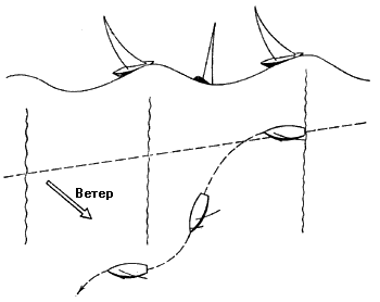 Иногда бывает необходимо стоять на месте или иметь минимальный ход. Чтобы остановить яхту, можно либо поставить ее в положение левентик, либо на остром курсе растравить паруса. В положении левентик яхта может стоять всего 10—15 секунд, а затем, остановившись под действием встречного ветра, начинает двигаться задним ходом. С растравленными парусами она будет медленно двигаться вперед, но удержать ее на курсе трудно. К тому же полощущие паруса расшатывают рангоут и сами могут порваться, а латы — сломаться. Можно, наконец, встать на якорь, но порой на это нет времени или не позволяет глубина. Поэтому, когда возникает необходимость задержаться на месте—дождаться отставшую яхту в эскадренном плавании или постоять в ожидании старта, — чтобы не утомлять команду лишним маневрир