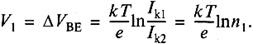 При анализе схемы будем полагать, что все транзисторы идеально согласованы по параметрам и имеют очень высокий коэффициент усиления тока базы. Напряжение база—эмиттер транзистора определяется следующим уравнением:
