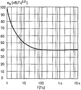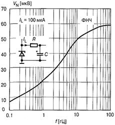 Видно, что при недокомпенсашш в диапазоне температур преобладает отрицательный ТКН, а при перекомпенсации — положительный. В справочниках часто приводится так называемая «температурная стабильность», под которой понимают относительное изменение выходного напряжения в процентах от номинальной величины при изменении температуры окружающей среды в допустимых для данной ИМС пределах. Используется также термин «температурный дрейф выходного напряжения», определяемый отношением Тепловой гистерезис — неоднозначность изменения опорного напряжения в результате изменения температуры. Он проявляется в том, что при нагреве ИОН и последующем возврате к исходной температуре, его опорное напряжение не всегда принимает первоначальное значение. Тепловой гистерезис трудно компенсировать, и зачастую он является главным источником погрешности при температурных колебаниях с амплитудой 25 °С и больше. Изготовители ИОН сравнительно недавно начали включать данные о тепловом гистерезисе своих изделий в техническую документацию. Например, для ИОН МАХ6250 тепловой гистерезис при изменении температуры в последовательности 25°С à 50°С à 25°С равен 20 мкВ, что сопоставимо с отклонением опорного напряжения при изменении температуры на 7°С. Долговременная нестабильность (временной дрейф) определяет относительное изменение выходного напряжения в процентах от номинального значения за 1000 часов работы при температуре окружающей среды, соответствующей верхней границе рабочего диапазона. Для ИОН на стабилитронах типичное значение временного дрейфа составляет Шум опорного напряжения характерен для ИОН, так же как и для ОУ, но интенсивность шума ИОН значительно превосходит таковую для ОУ. Шум опорного напряжения вносит ошибку в измерения. В опорном напряжении преобладают два типа шума: фликкер-шум (