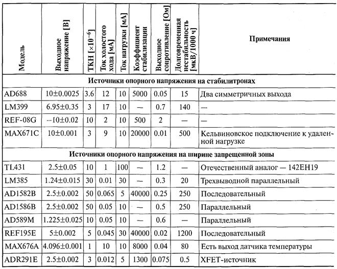 Параметры источников опорного напряжения.
