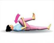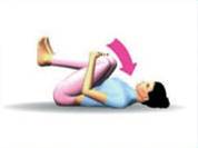 Лежа на спине, согните одну ногу в колене, другую - вытяните. Обхватите колено согнутой ноги и притяните ее к груди. То же самое проделайте с другой ногой.
