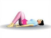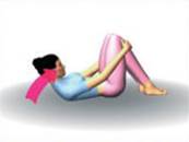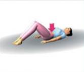 Лежа на спине, согните ноги в коленях, напрягите мышцы живота и прижмите поясницу к полу. Сосчитайте до пяти и расслабьте мышцы.