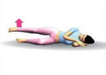 Лёжа на боку, согните находящуюся на полу ногу в колене, другую ногу вытяните. Поднимайте и опускайте вытянутую ногу несколько раз.