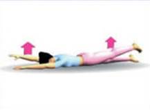 Лежа на животе, вытяните руки вперед, лоб прижмите к полу. Одновременно поднимите левую руку и правую ногу. Во время всего упражнения прижимайте лоб к полу. Зафиксируйте позу на 5 секунд, затем вернитесь в исходную позицию