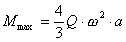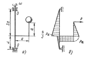 Рассмотрим несколько примеров расчета вращающихся рам. Стержень регулятора с прикрепленным к нему грузом массой Q вращается вокруг оси О-О (рис. 15.21, а) с постоянной угловой скоростью Сила инерции груза Рассматривая силу инерции груза как единственную внешнюю нагрузку на брус, строим эпюру изгибающих моментов (рис. 15.21, б). Максимальный изгибающий момент