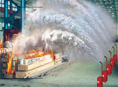 Така система забезпечує наступні переваги: зниження витрат на купівлю резервуарів і вмістищ для зберігання води; не має потреби виконувати секціонування частин приміщення; шкода, заподіяна тонкорозпиленою водою, набагато менша ніж збитки, які завдає вода у разі спрацьовування спринклерної або дренчерної установок, де діаметром крапель розпилення становить 0, 4 - 2 мм. Системи пожежогасіння тонкорозпиленою водою використовують для гасіння пожеж класів А (твердих горючих матеріалів), В (горючих рідин), С (горючих газів) і Е (електроустановок під напругою до 1000 В) у будівлях, спорудах і приміщеннях різного призначення. Але заборонено їх застосовувати для гасіння лужних металів, карбідів і розжареного вугілля − ці речовини після контакту з водою внаслідок хімічної реакції виділяють велику кількість тепла. Установки Вибирають дозу-вальний пристрій в установках пінного пожежогасіння залежно від особливостей об'єкту, системи водопостачання і типу установки (спринклерна або дренчерна). Нині системи дозування піноутворювача проектують згідно з двома основними схемами: з наперед приготованим розчином піноутворювача і з дозуванням піноутворювача у потік води за допомогою насоса-дозатора з дозувальною шайбою або за допомогою змішувача. Як приклад застосування установок пінного пожежогасіння можна розглянути гасіння нафтопродуктів. Спочатку шар піни потрапляє на поверхню рідини, яка горить. Під впливом нагрітого до температури кипіння нафтопродукту, частина піни руйнується. Вода, яка виділилася внаслідок цього у вигляді крапельок, проходячи через рідину, охолоджує її поверхневий шар, що призводить до зниження швидкості випаровування нафтопродукту. Частина піни, що залишилась, накопичуючись шаром певної товщини на поверхні нафтопродукту, перешкоджає його випаровуванню. Через це кількість пари нафтопродукту, що надходить до зони горіння, різко скорочується й стає недостатньою для підтримання горіння, а отже воно припиняється. Системи порошкового пожежогасіння використовують для усунення й локалізації осередку загоряння твердих горючих матеріалів, горючих рідин і електроустаткування у приміщеннях різного призначення. Як вогнегасильну речовину у них застосовують спеціальний порошок. Установки порошкового пожежогасіння можуть працювати згідно з командою пожежної сигналізації, так і в автономному режимі. У першому випадку вогнегасильна речовина потрапить на захищувану територію приміщення не пізніше ніж за 30-35 с після виявлення пожежі. Автономні установки найчастіше викидають разовий заряд порошку і гасять пожежу на початковій стадії у локальній зоні. Спрацьовують вони від підвищення температури у повітряному довкіллі.