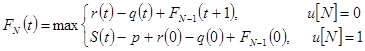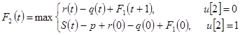 t – возраст оборудования (0 – новое, 1 – 1 год и т.д.) r(t) – прибыль от реализации продукции за 1 дискрет планирования (1 год) на единицу оборудования возраста t. q(t) – эксплуатационные издержки на 1 дискрете планирования (на содержание оборудование возраста t). S(t) – ликвидационная стоимость оборудования возраста t. p – стоимость нового оборудования. Fj(t) – максимальная прибыль от использования оборудования возраста t на оставшемся интервале планирования продолжительности j