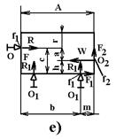 Пятый вариант. Обрабатываемая заготовка зажимается (рисунки 2, д, е) горизонтально действующей силой зажима W. Расстояние между силой зажима и силой реакции от бокового упора выбирают таким, чтобы обрабатываемая заготовка надежно была прижата к установочным опорам приспособления. На заготовку, зажатую в приспособлении, действуют сила зажима W, сила реакции R1 и R от установочных и зажимных опор и силы трения F, F1, F2 между поверхностями детали, установочными и зажимными элементами приспособления. Приравнивая сумму моментов относительно точки О нулю, найдем силу: