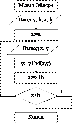 Таким образом, получение таблицы значений искомой функции у(х) по методу Эйлера заключается в циклическом применении пары формул: