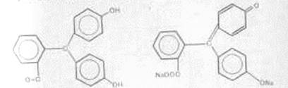 Будова і забарвлення індикатора фенолфталеїну А) в кислому середовищі б) в лужному середовищі