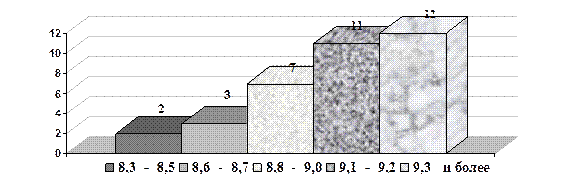 Рисунок 2. Гистограмма распределения регионов РФ по уровню рождаемости в 2004 году, ‰