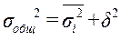 г) Рассчитаем общую дисперсию по правилу сложения дисперсий.