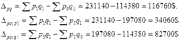 Физический объем товарооборота увеличился на рынке 1 на 72%. 2. Абсолютное изменение товарооборота, в том числе изменения цен и физического объёма продаж:
