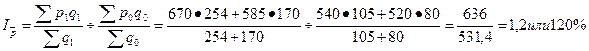 Определите: 1.для рынка 1 общие индексы товарооборота, цен, физического объема товарооборота; 2. Прирост товарооборота в отчётном периоде за счёт изменения цен и объема продажи услуг на рынке 1. 3. Покажите взаимосвязь между исчисленными индексами. 4. Вычислите для двух рынков вместе по направлению Турция индексы цен: а) переменного состава; б) постоянного состава; в) влияние изменения структуры объёма продажи на динамику средней цены. 5. Определите в отчётном периоде прирост средней цены (за счёт повышения цен на каждом рынке и изменения структуры продажи) Покажите взаимосвязь между перечисленными индексами. Решение. 1. Для рынка 1: а). общий индекс товарооборота