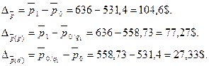 3. абсолютное изменение средней цены, в том числе за счёт изменения цен и структуры продаж: