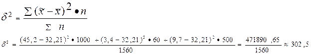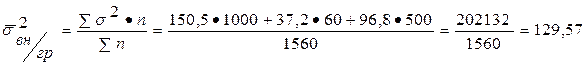 2. Определим общую вариацию цен: а) Для этого рассчитаем межгрупповую дисперсию