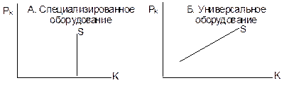 Отраслевой спрос на капитальную услугу – это совокупный спрос всех фирм, действующих в отрасли. Соответственно рыночный спрос на капитал – совокупный спрос со стороны всех отраслей, использующих данный вид капитала. Функции спроса на капитал со стороны отрасли и экономики в целом имеют ту же форму, что и функция спроса отдельной фирмы. Теперь – о предложении. Функции предложения капитальных услуг для отдельной отрасли различаются в коротком и длительном периодах, а также в зависимости от вида физического капитала, используемого отраслью. Если отрасль использует специализированное оборудование или специализированные транспортные средства (доменные печи, пассажирские самолеты), то их предложение фиксировано в коротком периоде. Поэтому функция предложения услуг такого капитала (S) – вертикальная линия (рис. 15-2А). Это не так в отношении универсального оборудования, которое может быть достаточно быстро переброшено из одной отрасли в другую. В результате даже в коротком периоде функция предложения услуг капитала для данной отрасли может иметь положительный наклон: с ростом рентной цены капитала все большее его количество будет приходить в отрасль из других отраслей (рис. 15-2Б): Рис. 15-2. Предложение услуг капитала для отдельной отрасли в коротком периоде