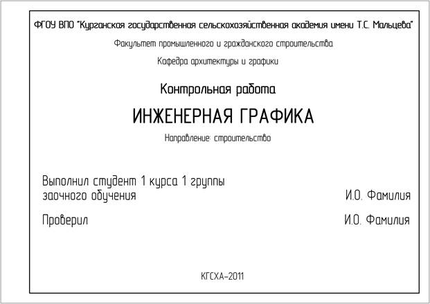 Рисунок 1 – Пример оформления титульного листа контрольной работы для студентов специальности «Промышленное и гражданское строительство»