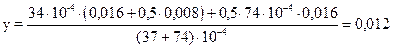 Проверить прочность и устойчивость корпуса цилиндрического аппарата с эллиптическими днищами, лежащего на трех опорах (рис. 1.19, схема II), от действия силы тяжести по следующим данным. Корпус аппарата DH = 2, 02 м; DB = 2, 0 м; S - C = 8 мм; С= 2 мм; Lц =10, 9 м. Днище: DB = 2, 0 м; h= 0, 55 м; Gдн = 0, 0036 МН; Vдн = 1, 17 м3. Материал корпуса и днища - сталь (Е = 2, 05 × 105 МН/м2; [ s ] = 240 МН/м2; [ s ]u = 146 МН/м2; r =7, 85 × 103 кг/м3). Среда r c = 1000 кг/м3; давление Р= 1, 0 МН/м2. Сила тяжести заполненного водой аппарата при гидроиспытании Gmax = 0, 35 МН. Расчет производим для средней опоры, имеющей наибольшую нагрузку. Реакцию опоры определяем по формуле (1.48). РБ = 0, 354 × Gmax = 0, 354 × 0, 35 = 0, 124 МН. Приведенную длину днища определяем по формуле (1.52): Lдн Приведенную длину аппарата определяем по формуле (1.50): Lпр = 10, 9 + 2 × 0, 42 = 11, 74 м. Расстояние между опорами при l1 = 0, 145 × Lпр (см. рис.19). l = 0, 5 × (Lпр -2× l1) = 0, 5 × (11, 74 -2 × 0, 145 × 11, 74) = 4, 16 м. Расчетный изгибающий момент от силы тяжести определяется по формуле (1.50): Mи =0, 0105 × 0, 35 × 11, 74 = 0, 0432 МН × м. Напряжение на изгиб в корпусе от силы тяжести определяем по формулам (1.52) и (1.53). Gи = 0, 0432 / 0, 8 × 22 × 0, 008 = 1, 69 МН/м2, т.е. напряжения ничтожно малы. Поэтому на устойчивость корпус не проверяем. Выбираем ширину опоры по рис. 1.14: в = 0, 2 × DB = 0, 2 × 2, 0 = 0, 4 м. Момент сопротивления расчетного сечения стенки корпуса над опорой определяем по формуле (1.60): W’ = 0, 4 + 8 × 0, 008 × 0, 0082 / 6 = 4, 95 × 10-6 м3. Напряжение на изгиб в стенке аппарата от действия реакции опоры определяем по формуле (1.59): s u =(0, 02 × 0, 124 × 2, 02) / 4, 95 × 10-6 = 1010 МН/м2 т.е. s u > [ s ]u = 146 МН/м2, следовательно, требуется усилить стенку над опорой накладкой. Требуемый момент сопротивления усиленного сечения элемента стенки определяем по формуле (1.61): W ³ (0, 02 × 0, 124 × 2, 02) / 146 = 34, 3 × 10-6 м3. Поскольку 4 × [ s ]u = 4 × 146 = 584 МН/м2 < s u = 1010 МН/м2, принимаем толщину накладки SH = 1, 6 × 10 = 16 мм. Расчетную площадь поперечного сечения стенки корпуса определяем по формуле (1.62) Fс’ = 0, 4 + 8 × 0, 008 × 0, 008 = 37 × 10-4 м2. Расчетную площадь поперечного сечения накладки определяем по формуле (1.63): Fн’= (0, 4 + 4 × 0, 016) × 0, 016 = 74 × 10-4 м2. Момент инерции площади Fс’ определяем по формуле (1.64): Iс = (37 × 10-4 × 0, 0082) / 12 = 1, 97 × 10-8 м4. Момент инерции площади Fн’ определяем по формуле (1.64): Iн = (74 × 10-4 × 0, 0162) / 12 = 15, 8 × 10-8 м4. Расстояние от нижней поверхности накладки до центра тяжести площади определяем по формуле (1.65):