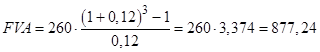 Пример 6: Семья предполагает приобрести через 3 года квартиру. С этой целью открыт жилищный накопительный счет в банке, на который в конце каждого года вносятся по 60 тыс. руб. Какая сумма накопится на счете через три года, если по счету начисляется 12 % годовых? Решение: Дано: A=2 60; R= 0, 12; t= 3