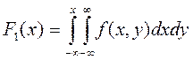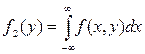 Действительно, этот интеграл есть вероятность попадания во всю плоскость xOy, то есть вероятность достоверного события. Геометрически свойство 4 означает, что объём тела, ограниченного поверхностью распределения и плоскостью xOy, равен единице. 5) Плотности распределения компонент двумерного случайного вектора могут быть получены по формулам: