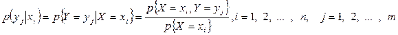 Совокупность вероятностей (34), то есть Аналогично определяются условная вероятность и условный закон распределения случайной величины Y при условии