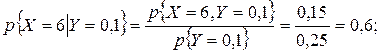 Таким образом, условный закон распределения случайной величины Х при Y =0, 1 таков: Таблица 5