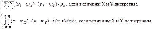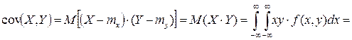 Они характеризуют рассеивание (разброс) случайной точки (X, Y) вокруг центра рассеивания Особую роль для характеристики случайного вектора играет второй смешанный центральный момент, называемый ковариацией. Ковариация случайных величин X и Y – это математическое ожидание произведения центрированных величин