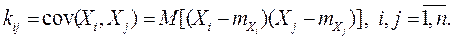 Можно показать, что обратное утверждение также верно. Возникает вопрос: в каких пределах находится значение коэффициента корреляции? Ответ на него даёт следующее свойство коэффициента корреляции: величина коэффициента корреляции заключена в пределах [-1, 1]. Если коэффициент корреляции r(X, Y)> 0, то говорят о положительной корреляции случайных величин X и Y; если же r(X, Y)< 0, то об их отрицательной корреляции. Положительная корреляция означает, что при возрастании одной из случайных величин другая имеет тенденцию в среднем возрастать. Например, вес и рост человека связаны положительной корреляцией. Отрицательная корреляция означает, что при возрастании одной из случайных величин другая имеет тенденцию в среднем убывать. Например, время, потраченное на регулировку прибора, и количество неисправностей, обнаруженных при работе прибора, связаны отрицательной корреляцией. В качестве характеристики зависимости системы n случайных величин (n-мерного случайного вектора) используют ковариационную матрицу. Ковариационная матрица случайного вектора (X1, X2, …, Xn) – это матрица, состоящая из элементов