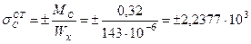 При динамическом коэффициенте КД = 78, 1, полученном в предположении упругого опирания балки КD в точках К и D, находим динамические напряжения в сечении А: