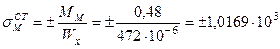 Статическое и динамическое напряжения в сечении М балки DМ: