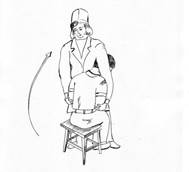 Встаньте лицом к сидящему пациенту сбоку от него, одну ногу поставьте рядом с ним, а другую – впереди него, зафиксировав его колени. Проверьте, что вы стоите удобно и можете свободно перемещать ваш вес с одной ноги на другую. Помогите пациенту наклониться вперёд так, чтобы его плечо, находящееся ближе к вам, твёрдо упиралось в ваше туловище. Потом вы можете наклониться через спину пациента и захватить сзади его локти руками ладонями вверх. Для того, чтобы зафиксировать туловище пациента во время транспортировки, зажмите в замок дальнее от вас плечо, положив спереди на него вашу руку. Этот захват даёт возможность прекрасноконтролировать движение пациента, так как на голову или шею не оказывается никакого давления.