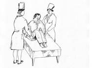 Колени пациента должны находиться под углом 90 градусов, колени и ступни вместе. Встаньте, поставив одну ногу рядом с пациентом, а другую – перед ним, зафиксировав его колени.
