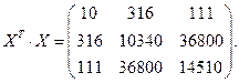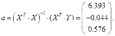 По данным задачи выпишем вектор и матрицу и определим коэффициенты уравнения линейной регресии.