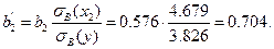(сумма 81.711 в числителе этой формулы была найдена ранее при вычислении коэффициента детерминации Доверительные интервалы с доверительной вероятностью 0.95 для коэффициентов регрессии имеют вид