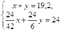 В 40%-ной смеси содержится 48 · 0, 4 = 19, 2 кг кислоты, т.е. х + у = 19, 2.