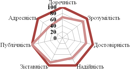 Рис. 2.3. Оцінка якості інформації бухгалтерського балансу, здійснена на основі анкетування бухгалтерів підприємств Полтавської області, у відсотках
