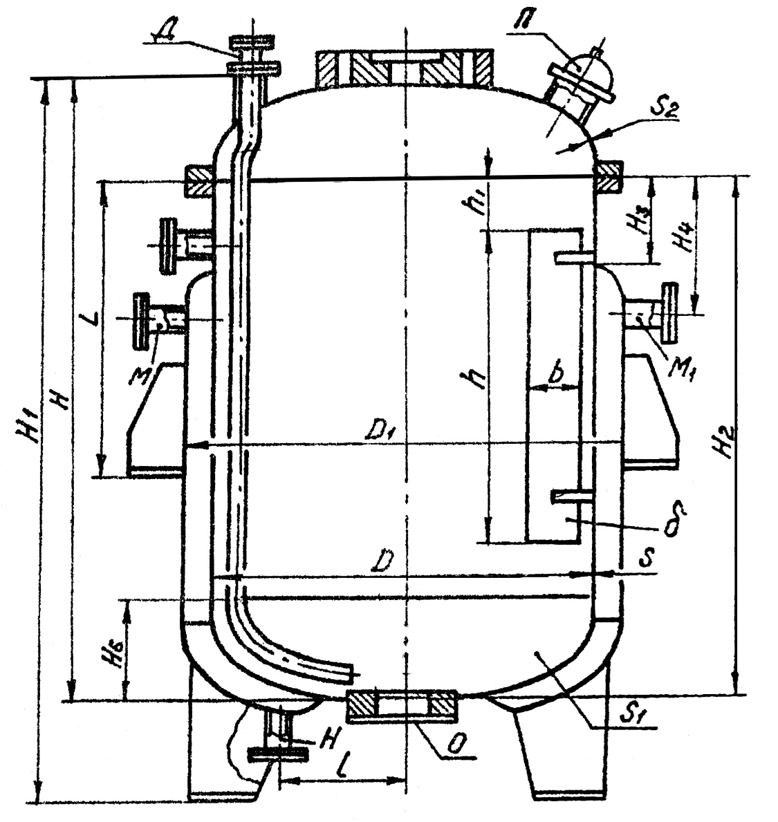Толщины обечайки, крышки и днища подобраны верно. Толщина стенки обечайки, днища и крышки с учетом наружного и внутреннего давления равна 14мм. Эскиз корпуса представлен на рисунке 1.