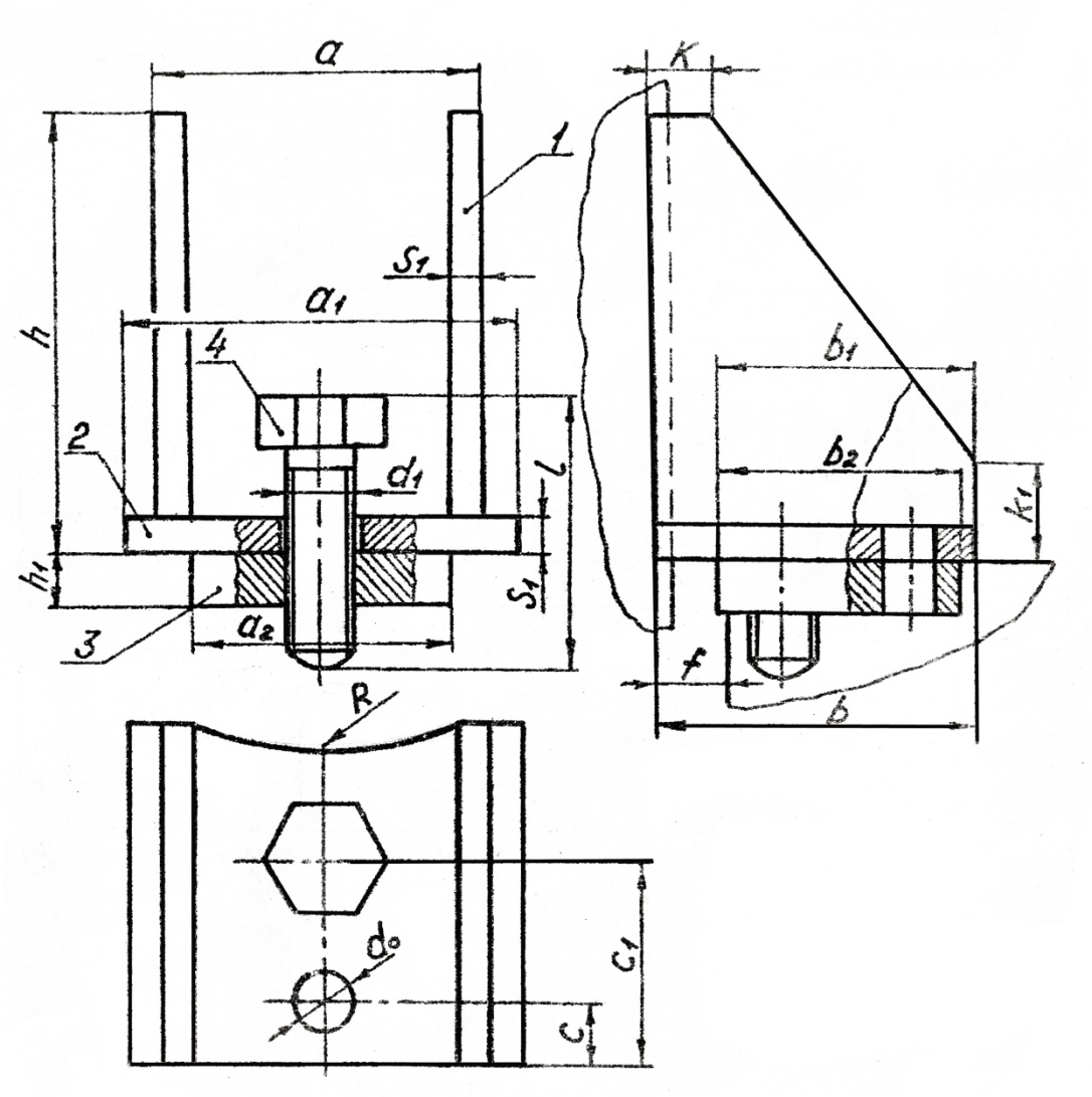 где λ – гибкость ребра; l – гипотенуза ребра, мм; S1 – толщина ребра, мм. Для опоры стойки величина l определяется из эскиза, а для опоры лапы рассчитывается: