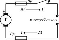 Г – генератор; Л1, Л2 – провода; Р – рубильник; Пр - предохранитель