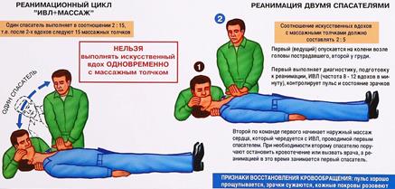 Рис. 7. Проведение искусственного дыхания и наружного массажа сердца