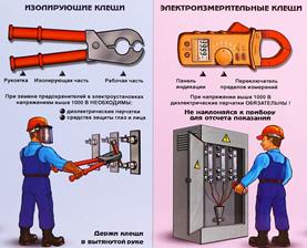 Клещи на напряжение до 1 кВ при пользовании необходимо держать на вытянутой руке подальше от токоведущих частей, а клещи на напряжение выше 1 кВ - только за рукоятку, прикасаться к их изолирующей части запрещается.