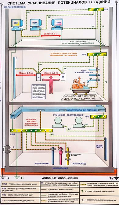 | Места установки заземлений в электроустановках напряжением до 1000 В.